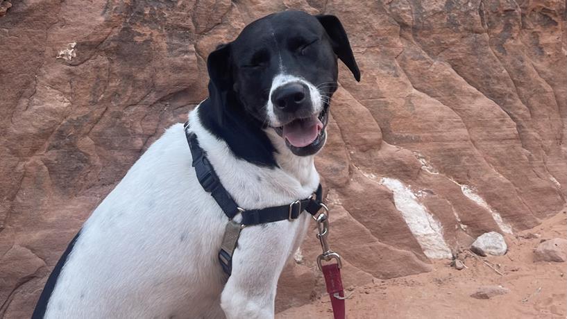 Meet Millie, our very own manager, Shelby’s baby girl! Millie lives in constant suspense thanks to the squirrels outside, which she considers a personal challenge. She’s also fairly certain she’s a cat—at least in spirit—graceful, independent, and selective with her affection. That confidence fades quickly when her own shadow makes an appearance, so she prefers to admire people from a distance and say hello on her own cautious terms.